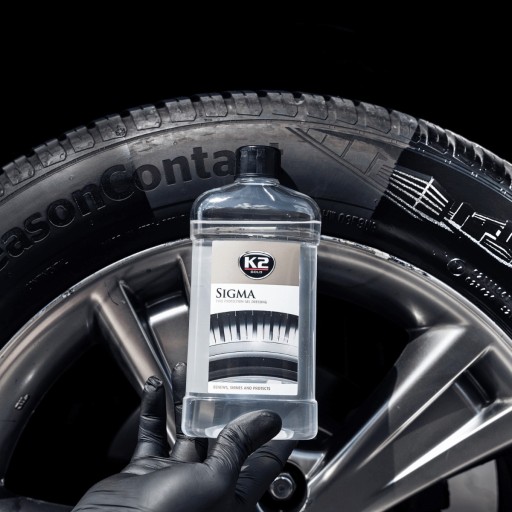 K2 SIGMA to połączenie szlachetnych olejków, nadających wysoki połysk i głęboki kolor oraz syntetycznych polimerów chroniących oponę przed pękaniem i starzeniem.