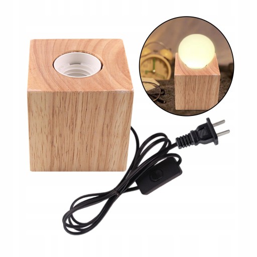 E27 Podstawa Drewniana Lampa Stołowa Żarówka Oprawka Dekoracyjna Lampka nocna kwadratowa 8x8cm