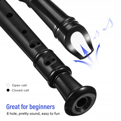 Kompletny zestaw: zawiera flet z 8 otworami, pręt czyszczący i ściereczkę do czyszczenia, angielskie nuty i flanelową torbę do przechowywania.
