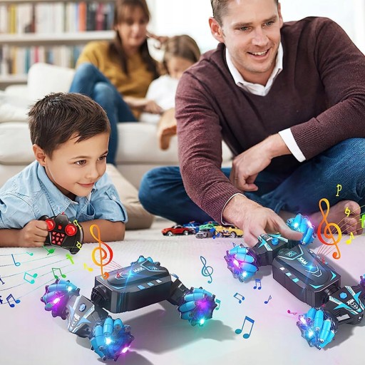 - Samochód zdalnie sterowany wykorzystuje zaawansowaną kontrolę gestów i nadaje się do użytku wewnątrz i na zewnątrz.