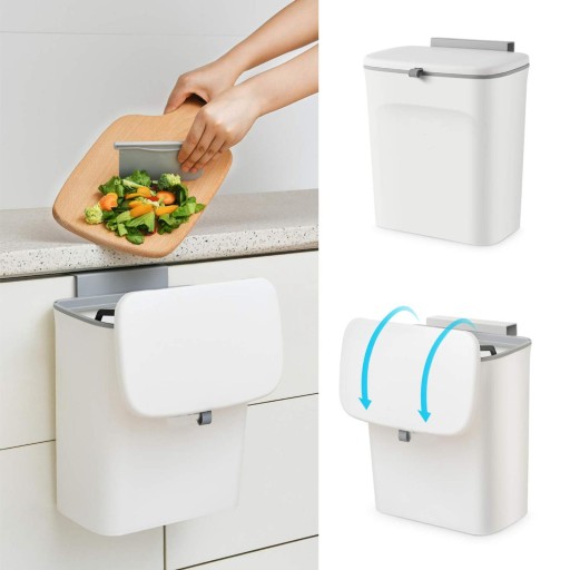 [Wiszący projekt]Wiszący kosz na śmieci z pokrywką zapewnia 2 sposoby zawieszenia, wiszące drzwi szafki, pastę do montażu na ścianie.