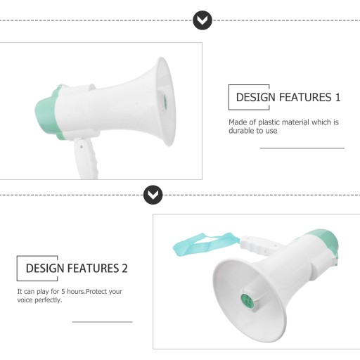 ✅Wykonane z tworzywa sztucznego, które jest trwałe w użyciu. Ten lekki i poręczny megafon może być używany nie tylko jako wzmacniacz głosu, ale także jako narzędzie awaryjne dzięki zintegrowanej funkcji syreny alarmowej. dźwięk jest bardzo wyraźny.
