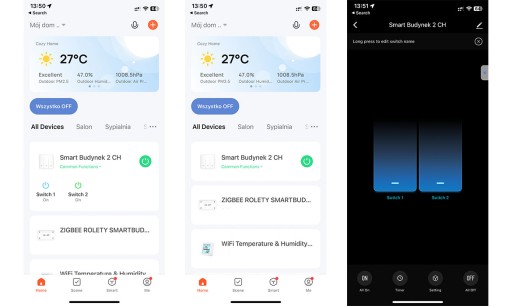 - Aplikacja działa w języku polskim, można w niej dodać i sterować różnymi inteligentnymi urządzeniami