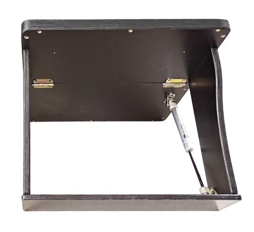 - Składa się i rozkłada za pomocą podnośnika gazowego, który utrzymuje go w stanie złożonym i rozłożonym