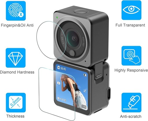 - Osłona ekranu + osłona obiektywu jest specjalnie zaprojektowana do DJI Action 2 Dual Screen i akcesoriów do obiektywów.