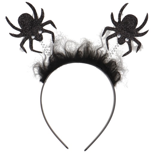 Opaska z dwoma pająkami na sprężynkach. Udekorowana rozczochranymi włosami i pająkami.