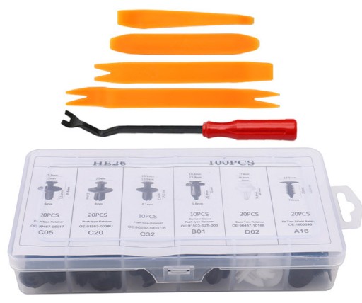 Nasz zestaw składa się z aż 100 elementów, włącznie z różnymi rodzajami spinek, kołków, klipsów oraz dodatkowymi narzędziami.
