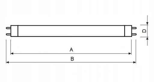 - Wymiary: długość całkowita (z pinami) ok. 452 mm, długość bez pinów ok. 438 mm, średnica rurki szklanej 26 mm