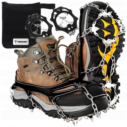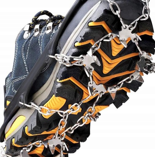 Elastyczne nakładki na buty z kolcami antypoślizgowymi to niezbędny element ekwipunku turysty. Każda nakładka zawiera 19 zębów z łańcuchami wykonane ze stali nierdzewnej. Zapewnią bardzo dobrą przyczepność do gruntu. Nadają się na jesienną oraz zimową porę roku. Gdy mamy podmokłe lub zamarznięte podłoże.