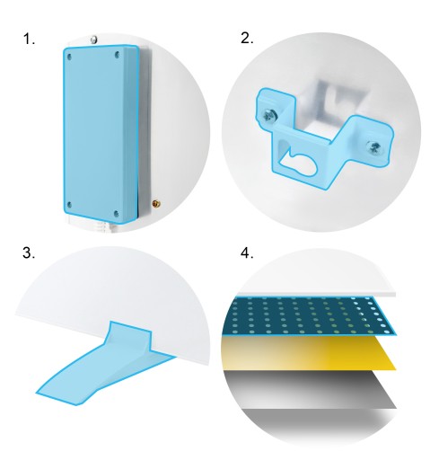 Łatwy system montażowy - pozwoli na szybki montaż urządzenia oraz umożliwi Tobie późniejszą zmianę sposobu montażu - powieszenie na ścianie lub rozstawienie w pokoju.