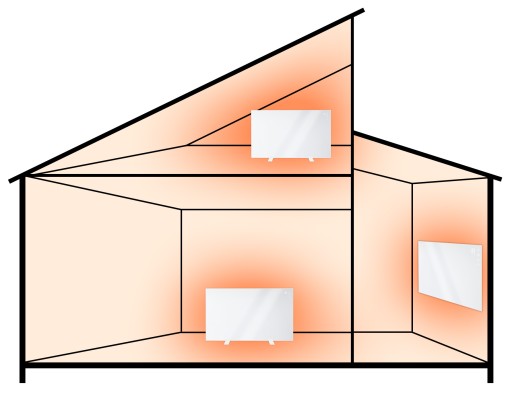 - grzejnik równomiernie generuje promieniowanie podczerwone, które padając na daną powierzchnię ogrzewa ją,