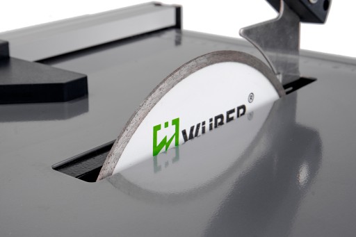✔️ Praca na mokro - ostrze tarczy jest stale chłodzone poprzez maczanie w zbiorniku poniżej, wypełnionym wodą. Dzięki temu temperatura tarczy, a co za tym idzie - również obrabianego materiału jest znacznie niższa, niż podczas cięcia na sucho