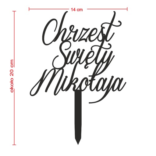 Wymiary i układ mogą nieznacznie różnić się w zależności od imienia, dopasowywane są tak, aby zachować proporcje toppera