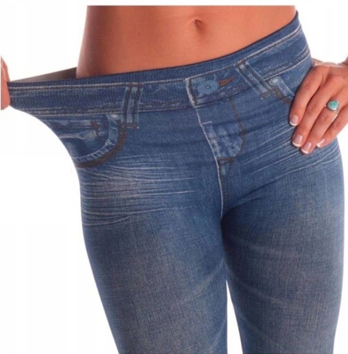 Legginsy SLIM JEANS S/M Wykonane zostały w 95% poliestru oraz w 5% z elastanu.