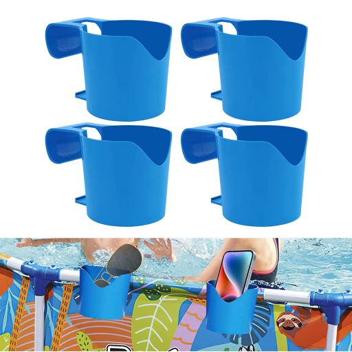 [4 opakowanie uchwytów na kubki nad ziemią] Otrzymasz 4 uchwyty na kubki przy basenie, powieś je na poręczy basenu zewnętrznego, aby zakończyć instalację. Pozwól w pełni cieszyć się chłodnym latem i spraw, aby wszystkie przedmioty były w zasięgu ręki.