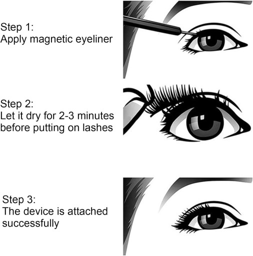 [Don't Fall off] Nasz eyeliner w płynie zawiera więcej magnetycznych cząsteczek niż inne rzęsy i eyelinery współpracujące ze sobą za pomocą silnych magnesów. Dzięki 5 silnym magnesom, które działają świetnie, nie martw się, że rzęsy opadną.