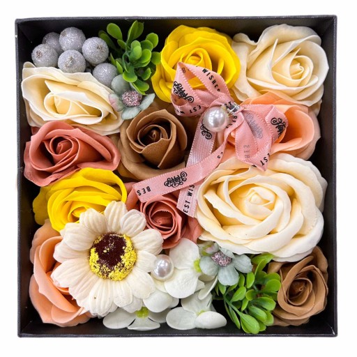 Prezent w postaci flower boxu z kompozycją z mydlanych kwiatów idealnie sprawdzi się na Walentynki, Dzień Kobiet, Dzień Mamy, Dzień Babci, Dzień Dziadka, Dzień Taty, prezent pod choinkę, upominek, jako alternatywa żywych kwiatów, prezent na wesele, ślub, prezent dla pracowników, jako podziękowanie dla gości, prezent na dzień nauczyciela, prezent na urodziny, prezent dla dziewczyny czy ukochanej. Będzie to świetny pomysł zamiast bukietu oraz nie zwiędnie tak jak żywe kwiaty. Kompozycja z kwiatów i róż mydlanych jest alternatywą dla wiecznych róż. Wieczne róże jako mydlane kwiaty nadadzą się do kąpieli, jako dekoracja czy prezenty dla pracowników. Super się sprawdzi jako dodatek do prezentu.