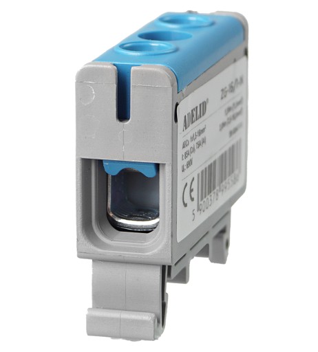 Uniwersalna listwa zaciskowa ZG, 1-polowa, z dwoma otworami, dla przewodów o przekroju od 1,5 do 16 mm2.