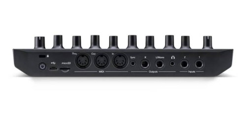 Połącz się z resztą studia dzięki pełnowymiarowym wejściom i wyjściom DIN MIDI oraz analogowemu wyjściu sync. Miksuj i nakładaj efekty na sygnał wchodzący przez 2 wejścia audio TRS, odsłuchuj przez wyjścia liniowe lub słuchawkowe.