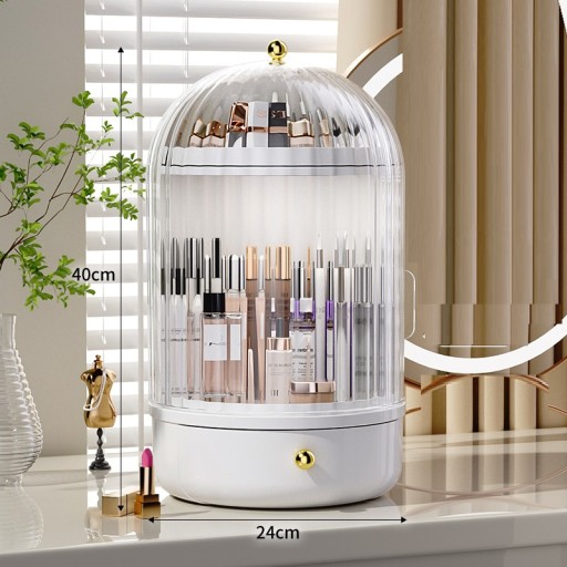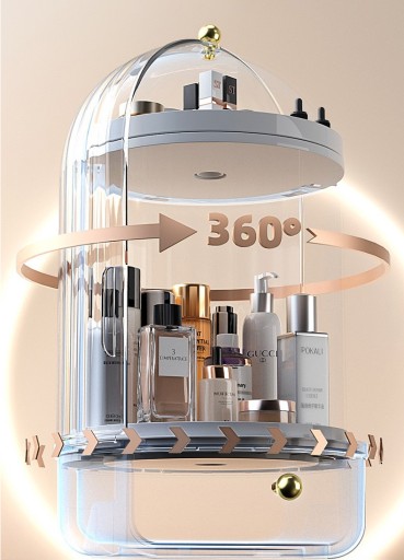- środkowa część to obrotowa podstawka na duże kosmetyki,