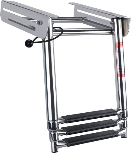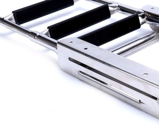 Wysokiej jakości rozkładana - trzystopniowa drabinka z prowadnicą, wykonana ze stali nierdzewnej do jachtu, łodzi lub motorówki.
