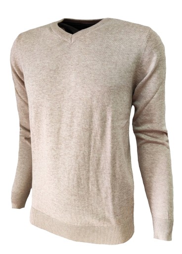Sweter męski klasyczny BEŻOWY w szpic L