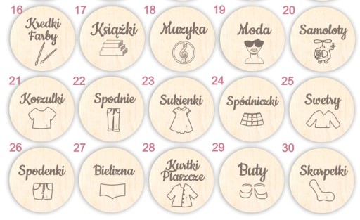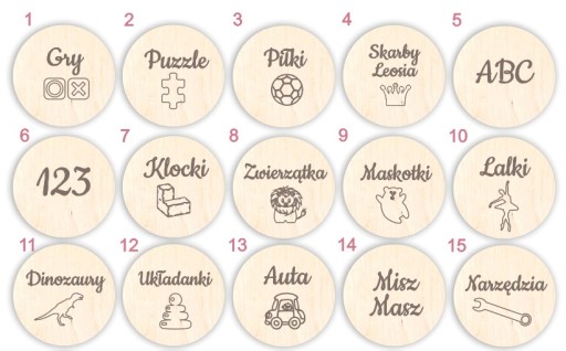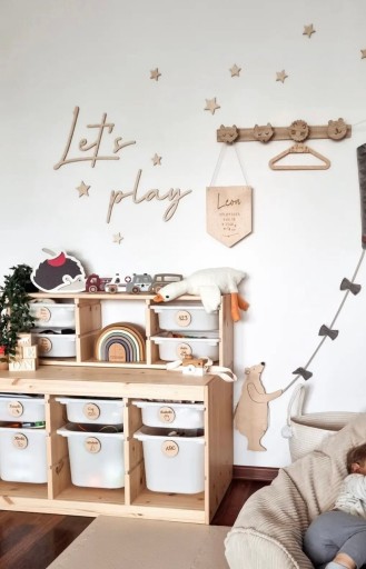Drewniane plakietki z piktogramami na pojemniki, szafki, pudełka, szuflady. Zachowane w stylu boho będą idealnie pasować do wnętrza pokoju Twojego Malucha. Ich bardzo ważną funkcją jest zapanowanie nad chaosem w pokoiku dziecka i stworzenie bezpiecznej dla niego przestrzeni według zasad Montessori. W ten sposób zadbasz o większy rozwój Twojego Maluszka.