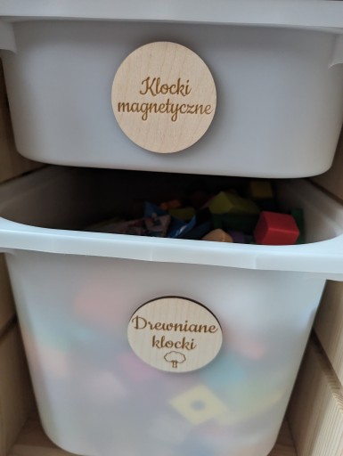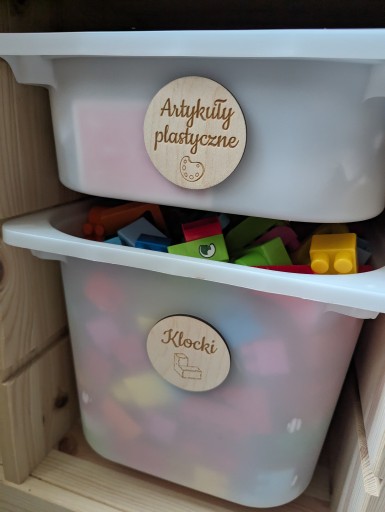 Plakietki podklejone są na całej powierzchni taśmą dwustronną - wystarczy je nakleić na pudełka, szuflady czy organizery. Jeśli nie chcesz aby plakietki były podklejone taśmą również poinformuj nas o tym w wiadomości. Plakietki są ręcznie szlifowane i czyszczone.