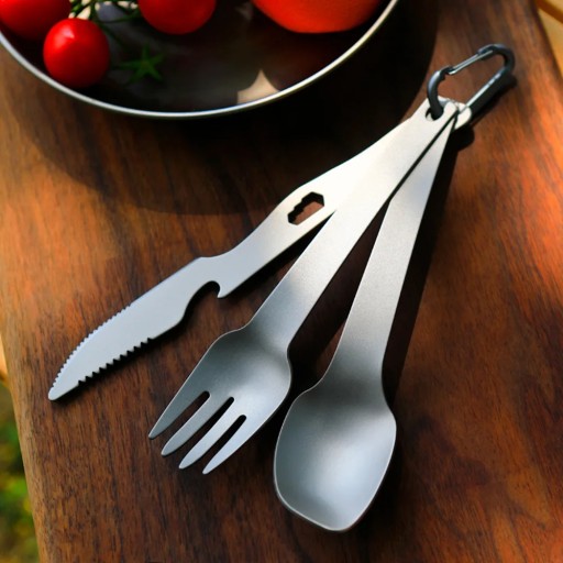 ⭐Tytanowy zestaw noży, widelców i łyżek poprawia wrażenia kulinarne, umożliwiając łatwe spożywanie różnorodnych potraw. Nóż i widelec doskonale nadają się do delektowania się stekami, a łyżka jest idealna do delektowania się zupami. ⭐Dane techniczne: ⭐Materiał: tytan ⭐Rozmiar: 18,6*2 cm/7,3*0,8 cala (nóż); 16,7*3,4 cm/6,6*1,3 cala (widelec); 16,8*3,9 cm/ 6,6*1,5 cala (łyżka) ⭐Waga: 64 g/ 2,3 uncji ⭐Lista pakietów: ⭐1 * nóż ⭐1 * widelec ⭐1 * łyżka ⭐1 * karabinek ⭐1 * torba do przechowywania