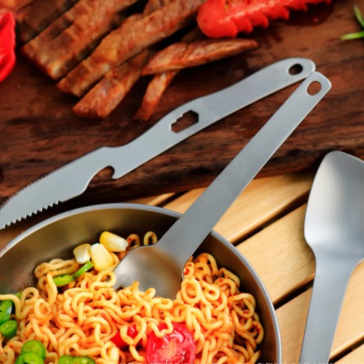 Набор столовых приборов с титановым походным ножом и ложкой.