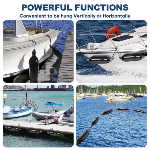 Odbijacze mają pionowe wypukłe pręgi, co zapobiega obracaniu się odbijaczy na burcie.