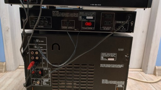 posiadam na sprzedaż wieże SONY LBT-V500, składającą się z podanych modeli: CDP-C305M, ST-V502, DXA-V502. Stan wizualny został zaprezentowany na zdjęciach powyżej. Sprzedaje wszystko co widoczne na zdjęciach, wraz z listwą. Moim zdaniem, wieża jest w bardzo ładnym stanie, bez większych śladów użytkowania. Napisy są czytelne, niepoprzecierane.