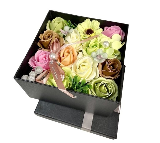 - w zestawie kwiaty z mydła imitujące prawdziwe.