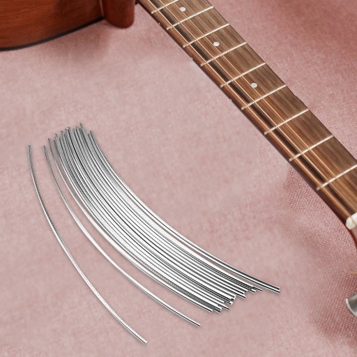 Cechy Kolor: srebrny Materiał: metal Rozmiar: 28.00X0.24X0.24cm/11.00X0.09X0.09in Materiał jest bezpieczny i odporny na zużycie i praktyczny w czasie użytkowania. Mały rozmiar, wygodne przechowywanie, nie zajmie zbyt dużo miejsca w torbie na gitarę. Pozwala łatwo przyciąć potrzebną długość Instalacja i wymiana progu gitary są również bardzo wygodne, odpowiednie dla początkujących gitarzystów. Dzięki tym drucikom progowym Twoja gitara będzie grać wyraźniej i cudowniej. Twój przyjaciel, który może towarzyszyć Ci w udanych ćwiczeniach i występach raz za razem.