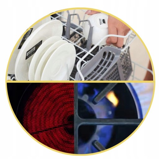 Wytrzyma wysokie temperatury i może być stosowany na kuchence elektrycznej lub gazowej