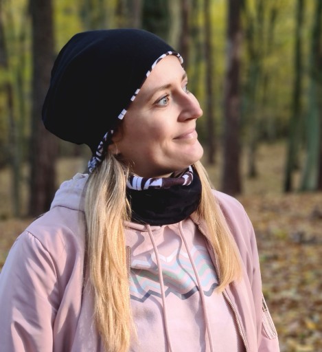 W dwustronnej polarowo-bawełnianej czapce będzie Ci ciepło i wygodnie.