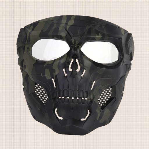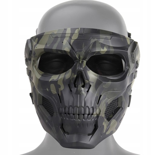 Maska pełnotwarzowa z designem, przerażająca i praktyczna.