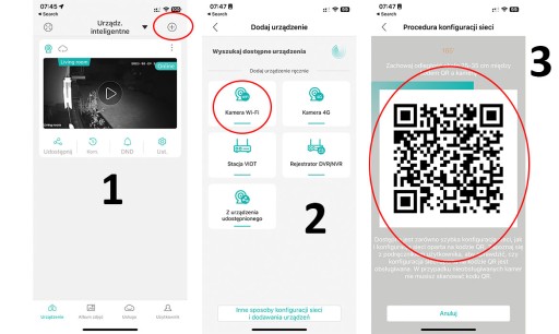 4️⃣ Przejdź dalej zgodnie z tym co wyświetla się na ekranie, gdy zobaczysz QR code na ekranie telefonu pokaż go do kamery i zaczekaj aż urządzenie go odczyta (rozjaśnij ekran i trzymaj telefon w odległości 10-25 cm od obiektywu)