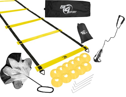 Zestaw koordynacyjny piłkarski drabinka koordynacyjna, znaczniki 12 szt., spadochron, trenażer - pas treningowy