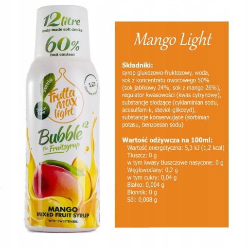 Syrop FruttaMax o smaku MANGO LIGHT -