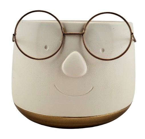 Osłonka w białym kolorze z humorystycznymi złotymi okularami. Idealnie wkomponuje się we wnętrze w stylu nowoczesnym jak i doda trochę świeżości w każde inne wnętrze. Osłonka ozdobi biuro, salon czy sypialnię.