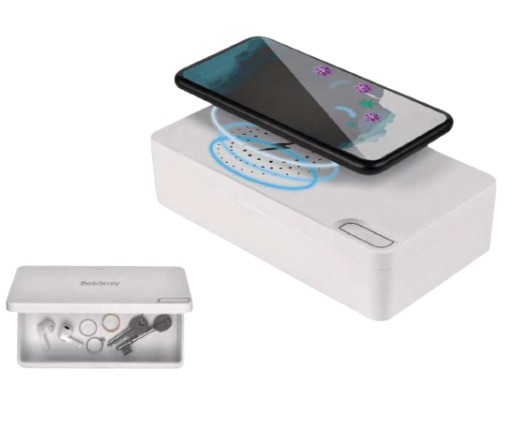 Oprócz czyszczenia telefonu komórkowego pudełko do sterylizacji jest również idealne do sterylizacji słuchawek, zegarków, masek, okularów, kluczy itp. To poręczne urządzenie pomaga ograniczyć przenoszenie wirusów i bakterii oraz sterylizuje przedmioty w ciągu kilku minut. Umieść swoje rzeczy w schowku i włącz pudełko do sterylizacji. Bezprzewodowa ładowarka 5W do ładowania urządzeń mobilnych z obsługą QI.