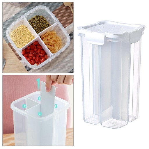 2.6L Przegródki Box Organizer Przezroczysty Plastikowy Pojemnik Do Przechowywania Na Zboże Białe