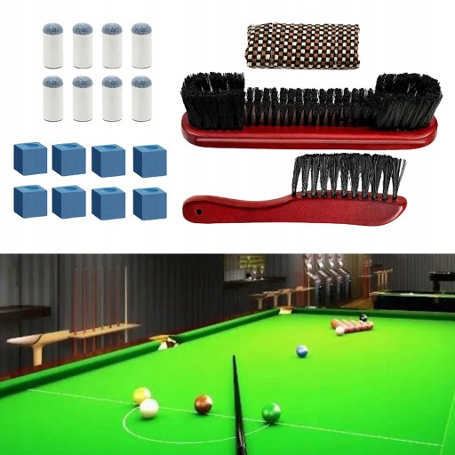 Pakiet zawiera: Otrzymasz 1 szt. 9-calowej szczotki do stołu bilardowego, 1 szt. 8,5-calowej szczotki do szyn bilardowych, 1 szt. 2 „x4” ściereczki do wycierania kija bilardowego, 8 szt. Kredy do kija bilardowego, 8 szt. 0,47 „poślizgu na końcówkach kija bilardowego.