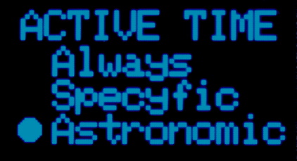 Ze względu na obecność wbudowanego zegara RTC, sterownik podświetlenia klatki schodowej, może sterować jasnością schodków w wyznaczonych porach. Przykładowo, jeśli chcemy by światło zapalało się tylko w nocy, bąź godzinach nocnych, wystarczy ustawić ustawieniach godzinę początku i końca świecenia.