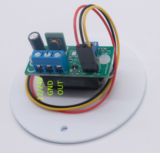 Jest oparty na popularnym laserowym detektorze SHARP. Szeroki zakres zasilania 6 – 29 V DC umożliwia zasilanie wszystkich urządzeń z jednego zasilacza. Przykłądowo jeśli mamy na schodach LEDy o napięciu 24 V. Za pomocą jednego zasilacza możemy zasilić światła LED, Sterownik AutoSteps i oraz prezentowane czujniki ruchu.