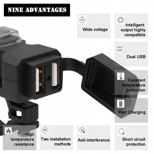 Ta prosta konstrukcja jest idealna dla każdego, chce oszczędzić koszty urządzenia 5 V z kierownicą pojazdu lub lusterka wstecznego. Dzięki zastosowaniu osłony chronicznej ładowarkę i gniazdo przed mgłą, kurzem i deszczem. wybór dla motocykla.