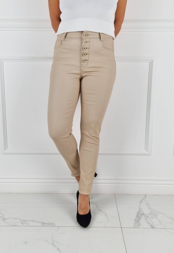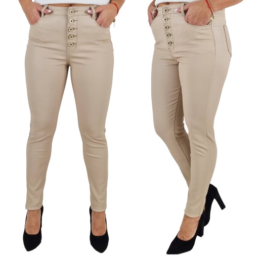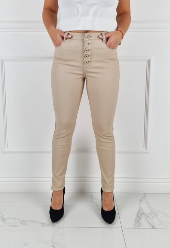 Świetne klasyczne spodnie woskowane matowe imitującą skórę, posiadają wysoki stan. Świetne do sportowego obuwia ale idealnie też sprawdzą się w połączeniu ze szpilkami, dzięki swojej uniwersalności, pasują niemal do każdej stylizacji. Elastyczny materiał podkreśla kobiecą sylwetkę. Spodnie są dopasowane, rozciągają się. Podkreśl swoje kobiece kształty! Spraw, by Twój codzienny Look był niepowtarzalny. Spodnie po obu stronach posiadają kieszenie.