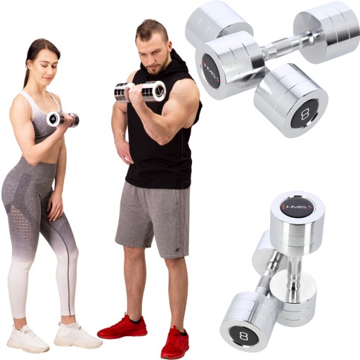 - CHD HMS, to chromowane stalowe hantle. Idealnie sprawdzą się przy zajęciach fitness, jak i ćwiczeniach siłowych.