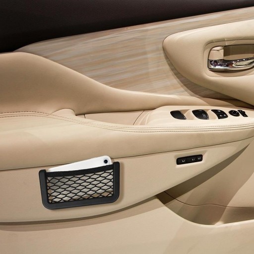 Kieszeń boczna z siatką. Uniwersalne dopasowanie do montażu na płaskich powierzchniach, siedzenia, drzwi, deski rozdzielczej itp.